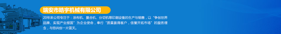 瑞安市皓宇機(jī)械有限公司是瑞安一家私營責(zé)任有限公司,注冊資金200萬,員工40余人,是具有獨立法人地位,專業(yè)生產(chǎn)定做各種非標(biāo)準(zhǔn)涂布機(jī)、復(fù)合機(jī)、印刷機(jī)、分切機(jī)、壓膜機(jī)等機(jī)械設(shè)備的制造廠。公司的機(jī)器主要用于生產(chǎn)保護(hù)膜、膠帶、雙面膠、不干膠、相紙、油畫布、汽車防爆膜、熱轉(zhuǎn)印、燙金膜、離型膜、離型紙、軟包裝印刷、軟包裝復(fù)合、軟包裝分切等各種產(chǎn)品...  [詳細(xì)]